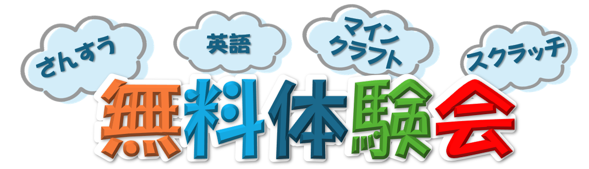 毎週土曜日午後13:10~と14:10~「マインクラフト」・「スクラッチ」プログラミング体験会(小学3年生以上推奨)と「さんすう」・「英語」講座(対象年齢5歳から小学3年生)の無料体験会を実施いたします。同じ講座であればお友達やごきょうだいと一緒に参加することもできます。専用サイトから「ジュニア無料体験会」の希望の日時を選択してお申し込みください。