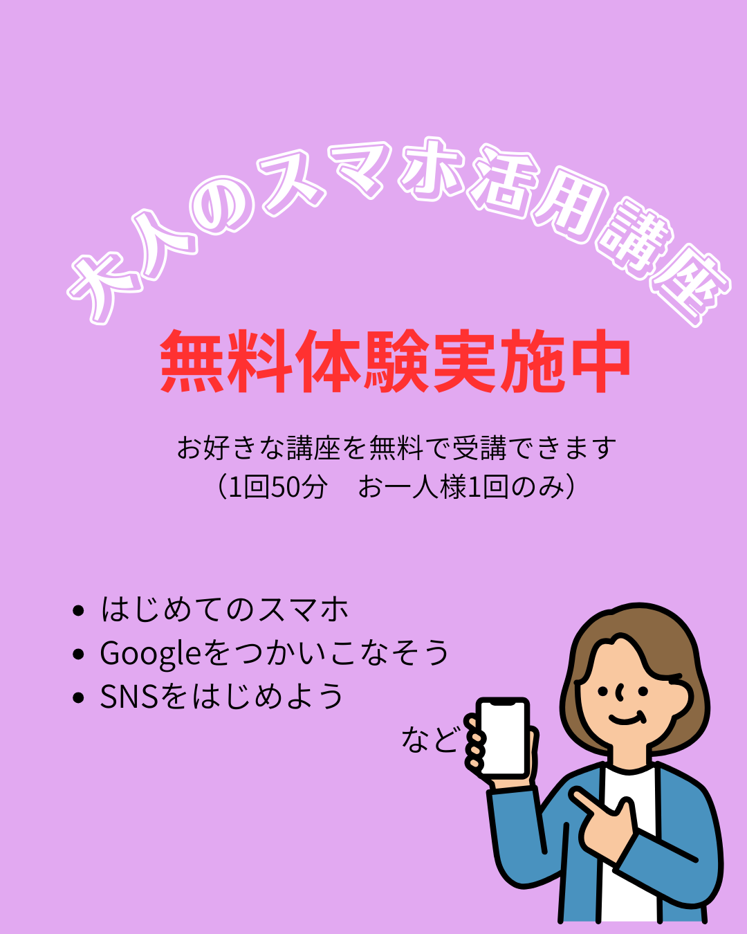 ご入会を検討されている方に50分の無料体験をご案内しております。