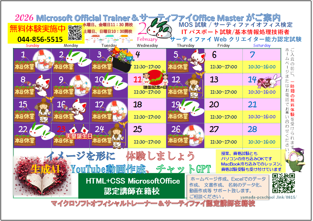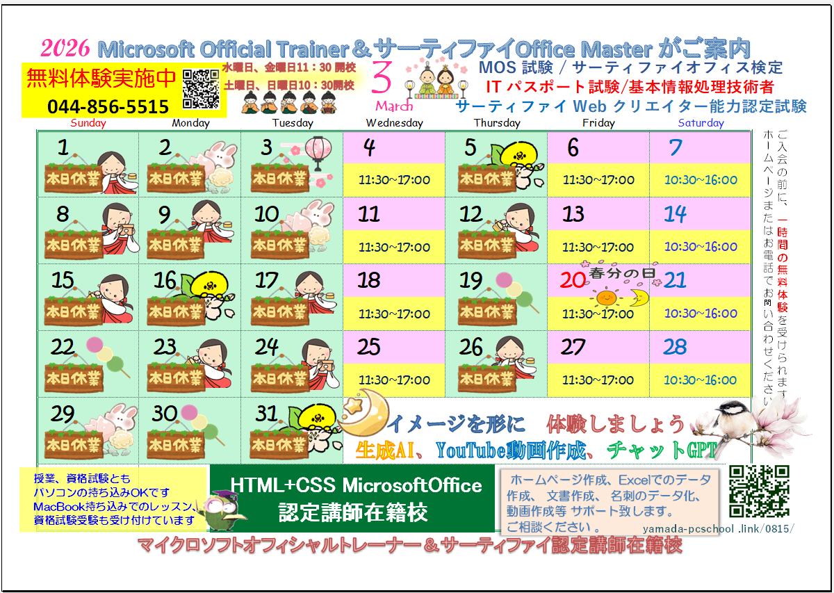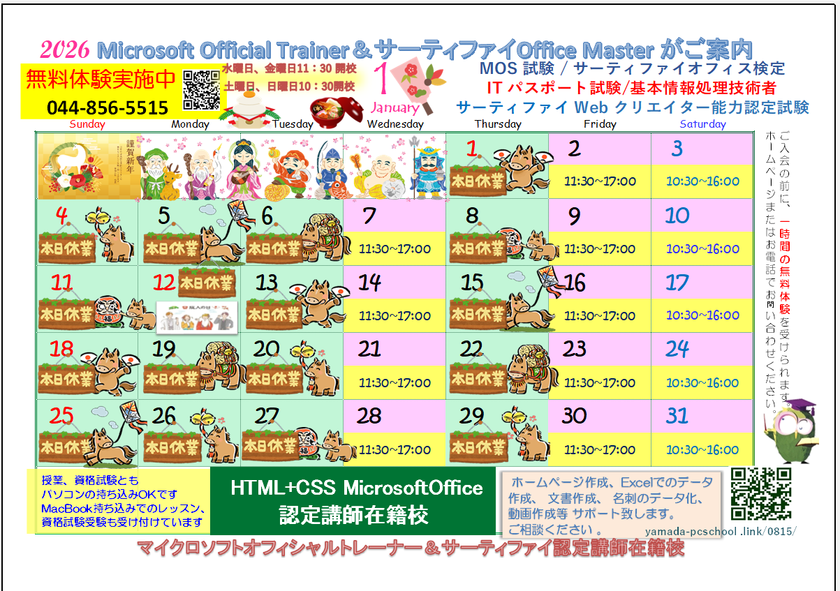 またはお問い合わせフォームよりご連絡ください。 ご自身のパソコン、ご自宅で使用中のソフトの持ち込みOKです。★お手持ちのパソコン、使用中のソフトでの疑問や悩みなど持ち込みでのご相談をお受けしております。 |
